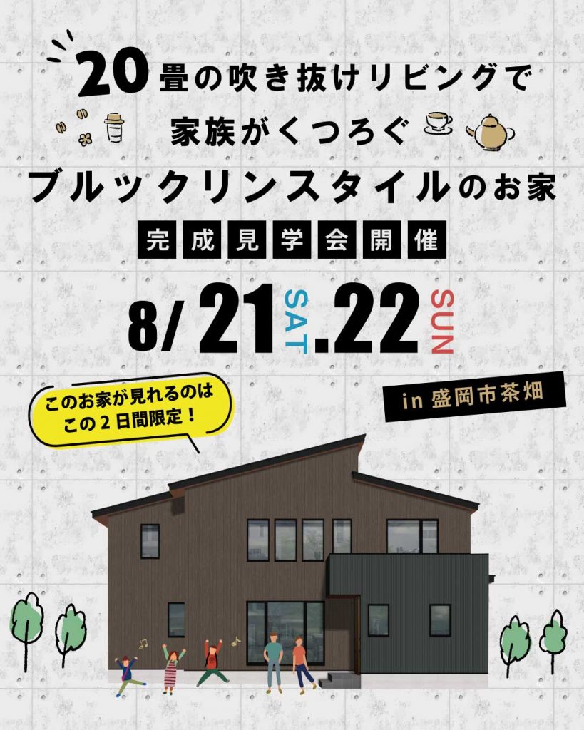 20畳の吹き抜けリビングで家族がくつろぐ、ブルックリンスタイルのお家