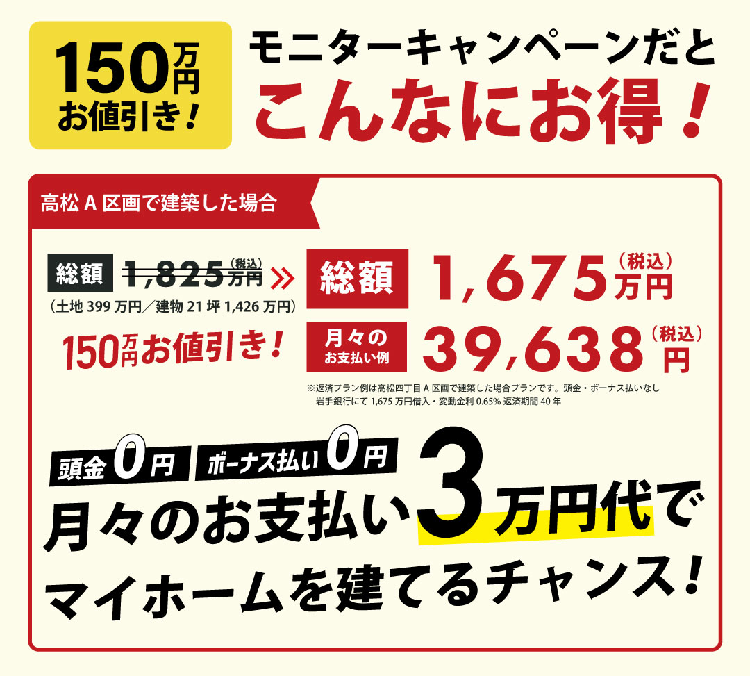 プランの総価格より総額150万円の値引きをさせていただきます!
