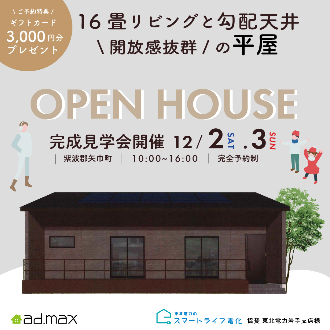 12月2.3日紫波郡矢巾町にて平屋見学会開催!