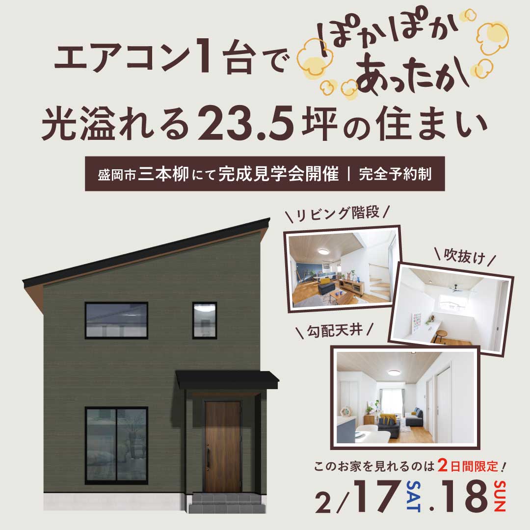 2月17日(土).18日(日)盛岡市三本柳にて完成見学会開催!