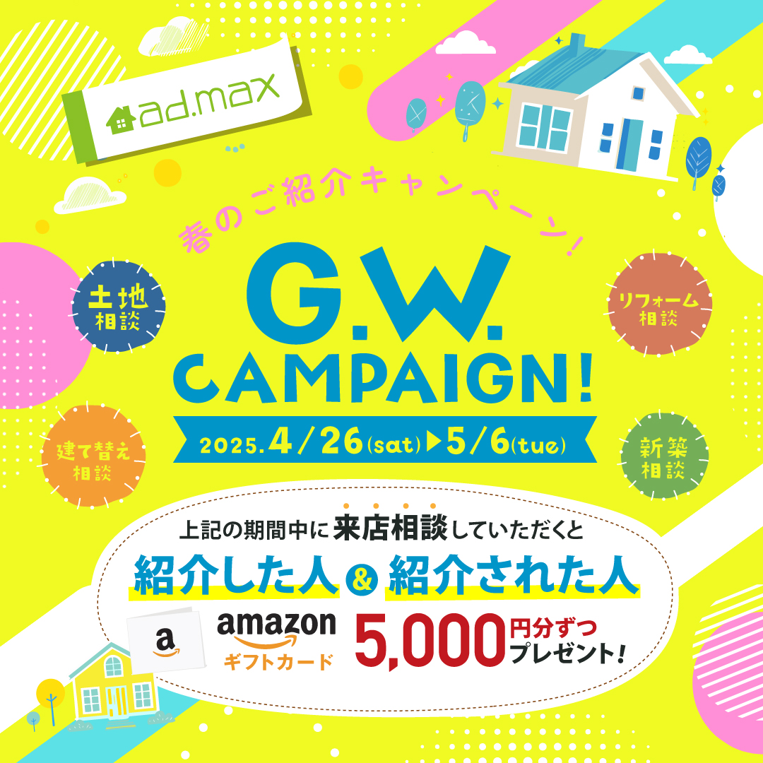 この度、アドマックスではゴールデンウィークの期間にご来店相談しに来ていただいたお客様へ新生活応援特典として