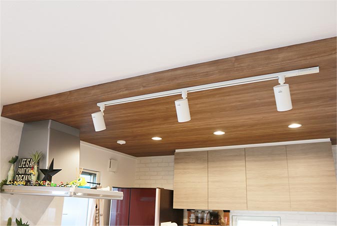 奥様のこだわりでキッチンは下がり天井に。