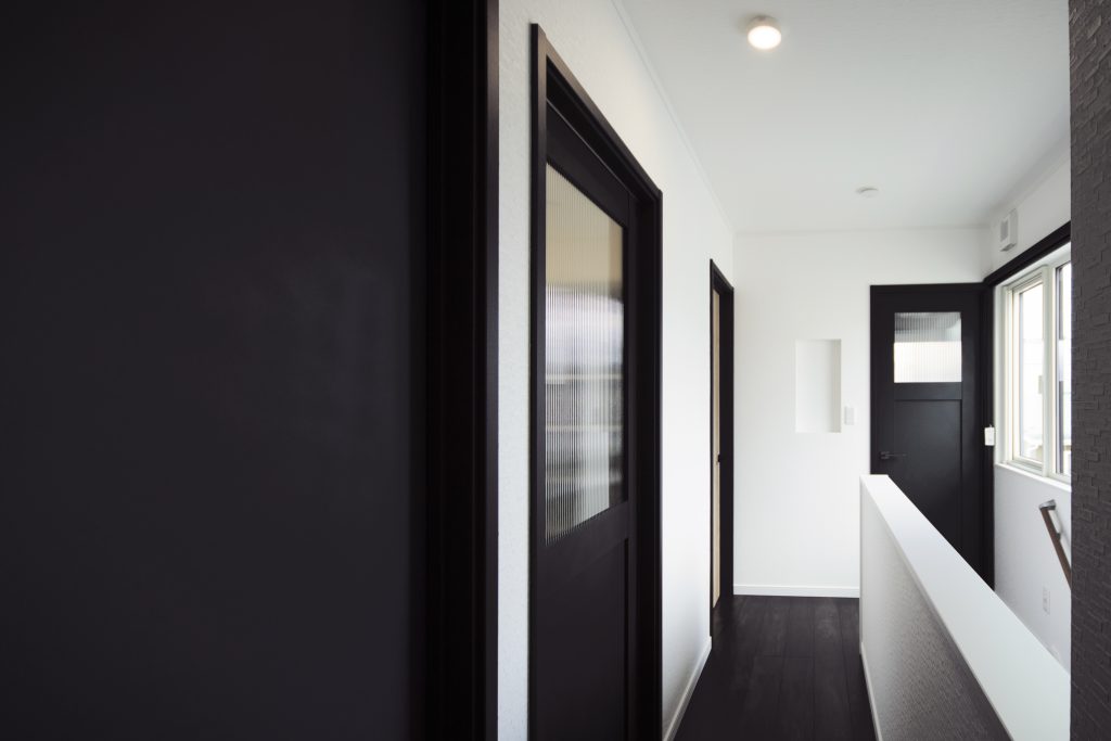 K様のこだわりで各部屋のドアは1つ1つ違うデザインのドアに仕上げました。