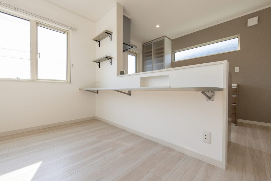 キッチン前にはカウンターを作り、趣味や家事の時間も家族が近い距離で過ごすことができる空間に。
