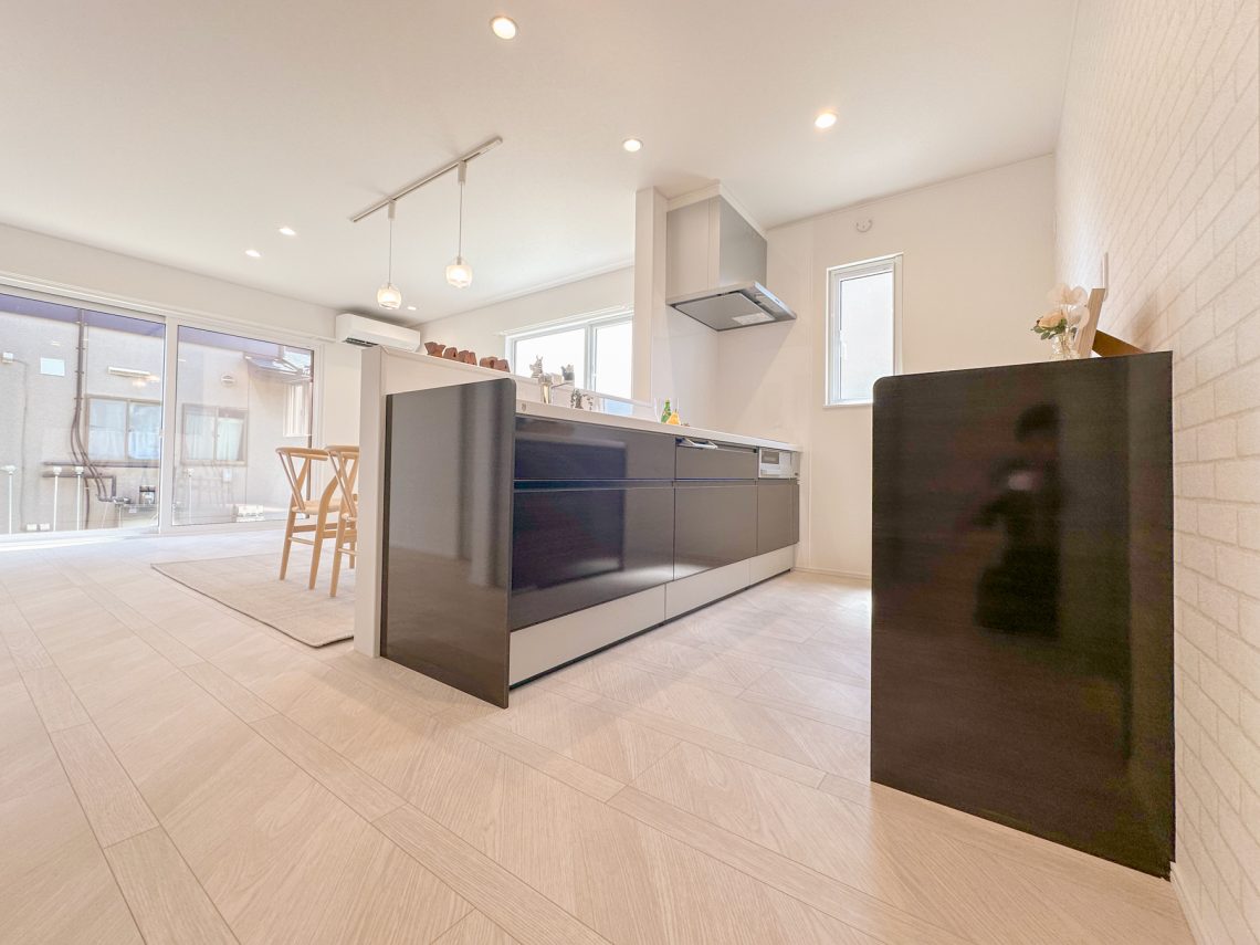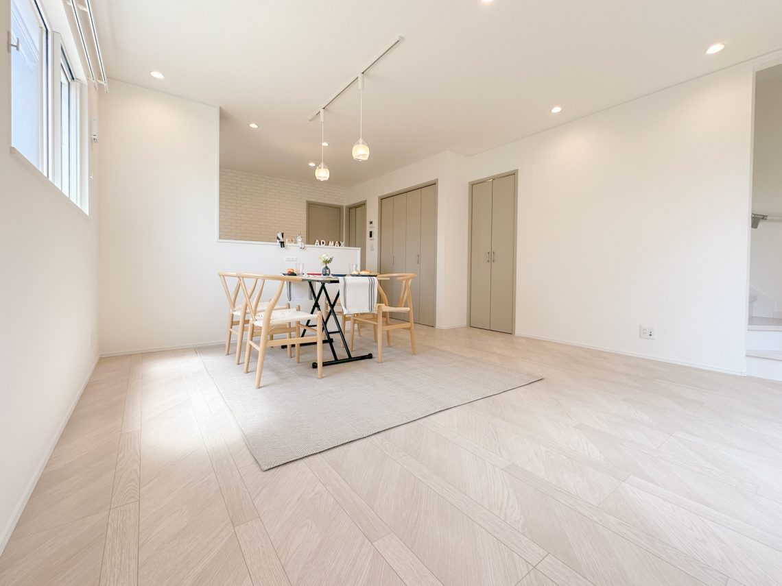 15帖のLDKは、パントリースペースと階段下収納もあるため使いやすさも備えた空間となっております。