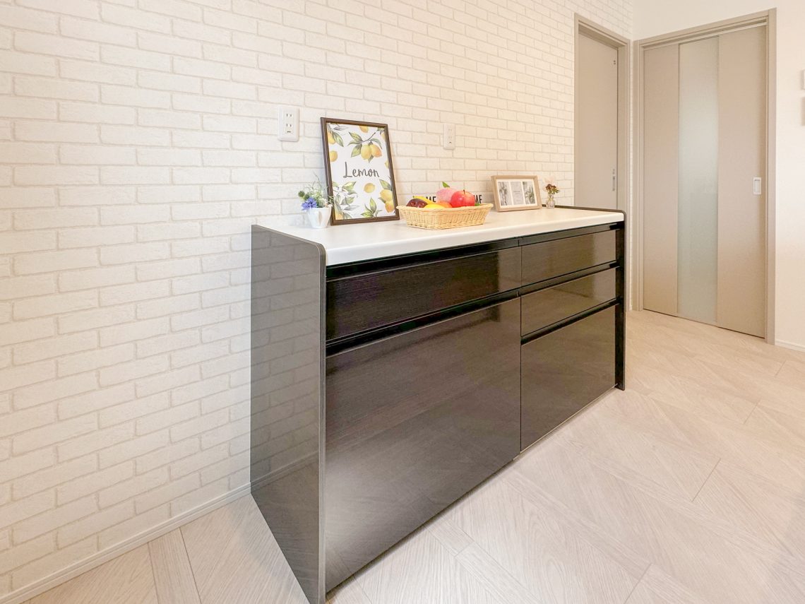 背面のカップボードとカラーも合わせて選択することができ、まとまりのあるキッチンにすることもできるのが人気です!