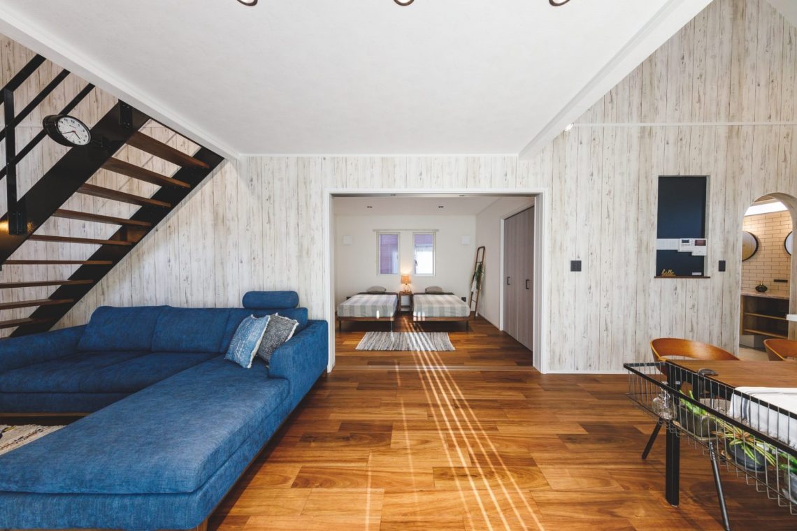 吹抜けが明るいブルックリンスタイルのお家